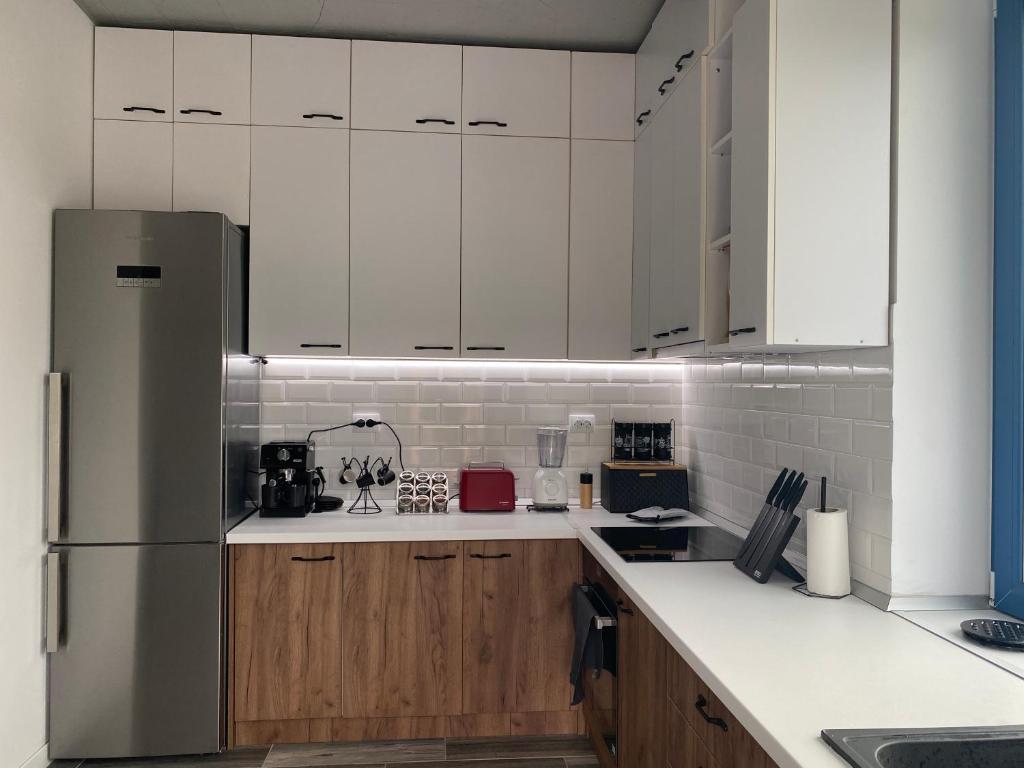 Vila este compusa din 3 dormitoare, fiecare dotate cu baie proprie, o baie comuna, un living si o bucatarie open space si 2 terase foarte spatioase.