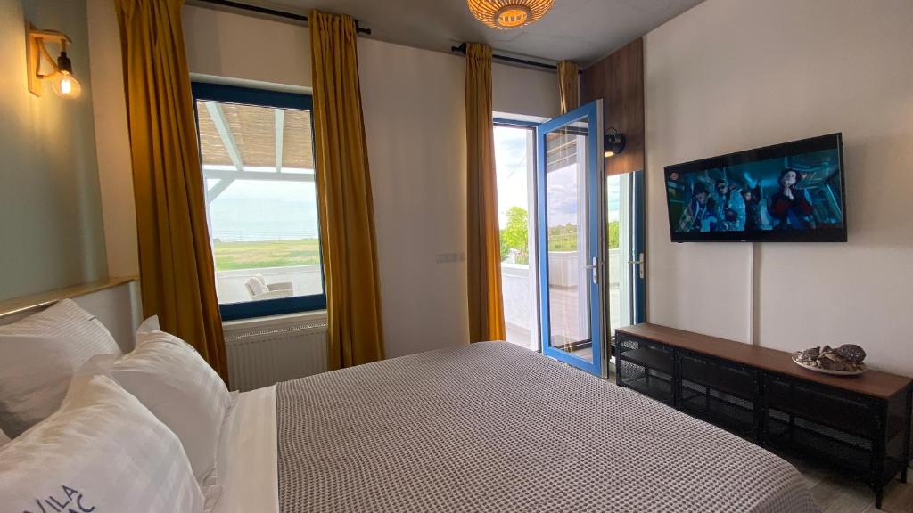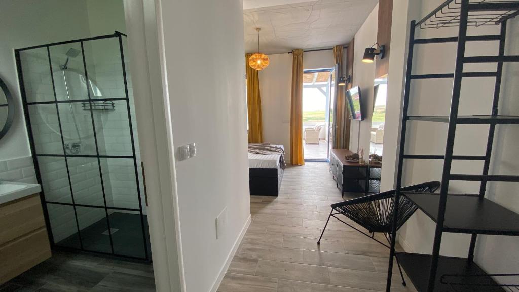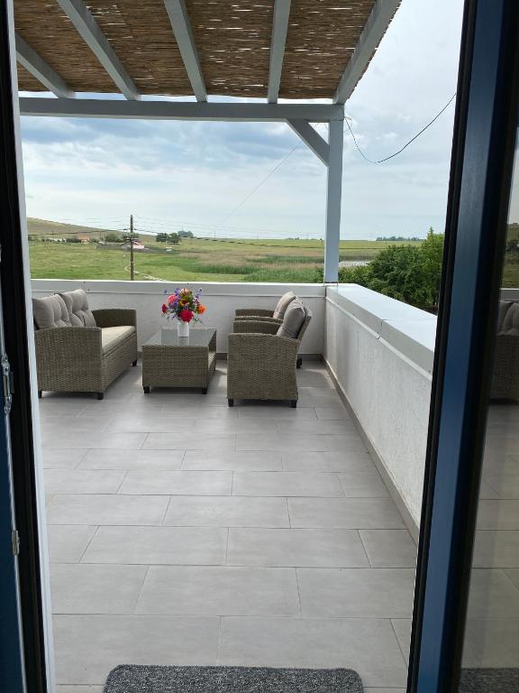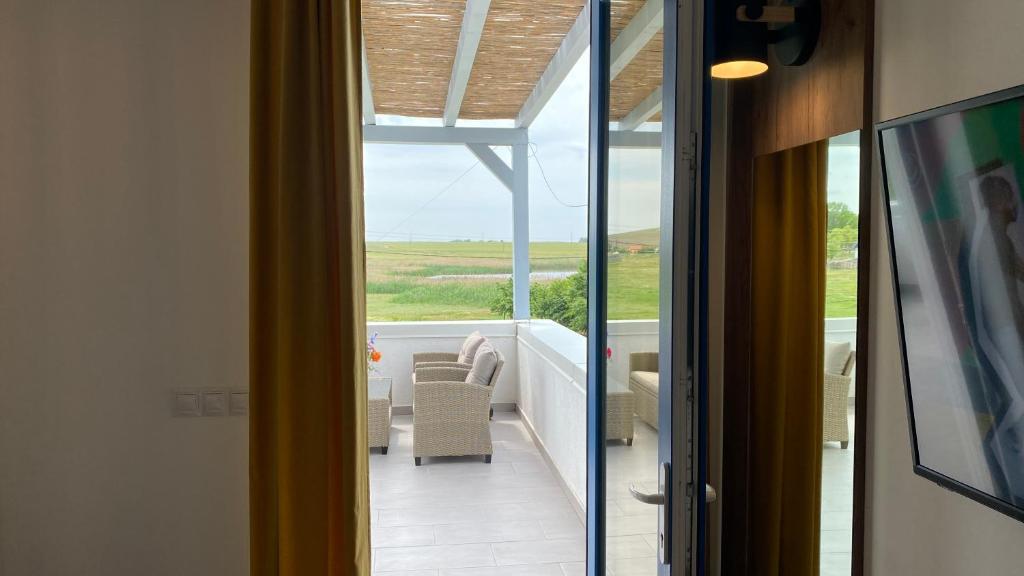 Eleganța simplă, ordinea și prospețimea designului aduc confortul vacanței perfecte în camere, iar două dintre ele, aflate la etaj, se deschid către o terasă largă cu vedere la Lacul Sarat.